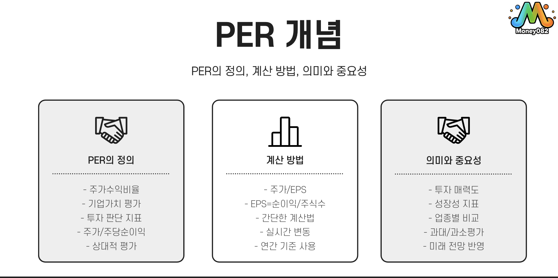 PER은 '주가 수익 비율'로, 기업의 주가가 순이익에 비해 얼마나 비싸거나 저렴한지를 보여주는 지표입니다. 계산 공식은 간단합니다: